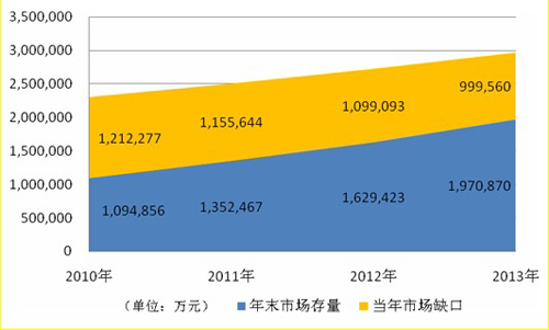 由此可估算出2010-2013年的市场缺口以6%比例递减,具体见图6: