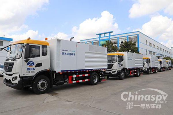 2020年11月6日第一专用车网记者获悉,近日,上海神舟汽车节能环保股份有限公司(以下简称神舟汽车)、东风商用车公司(以下简称东风)和艾里逊一起合作开发了国六排放的新型节能自动挡机场除冰液回收车。为应对将要来临的冬季,最新的5台除冰液回收车已于今年9月底交付北京大兴国际机场。