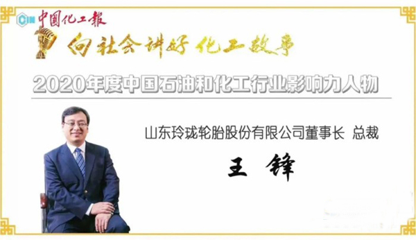 因2020年带领企业迎难而上,克服疫情对企业发展的冲击和影响,在提升企业竞争力、推动行业高质量发展、履行社会责任等方面取得的突出成就,玲珑轮胎董事长、总裁王锋荣获“2020年度中国石油和化工行业影响力人物”称号。玲珑轮胎被授予“十三五中国石油和化工·典范榜品牌典范”和“2020年度中国石油和化工·企业公民楷模榜社会责任典范”。