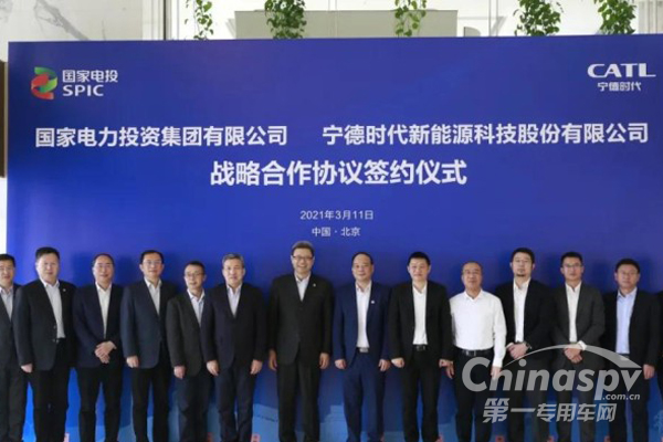 2021年3月11日,宁德时代新能源科技股份有限公司(简称“宁德时代”)与国家电力投资集团有限公司(简称“国家电投”)在北京签署战略合作协议。宁德时代副总裁谭立斌与国家电投党组成员、副总经理刘明胜分别代表双方签约。宁德时代董事长曾毓群,国家电投党组书记、董事长钱智民见证了签约过程。