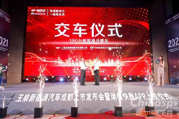 2021年4月28日,玉柴新能源汽车公司新产品发布会在成都举行。活动现场,玉柴新能源汽车公司向瑞佰快跑网络货运平台交付了100辆纯电动冷藏车,标志着玉柴新能源汽车正式进入川渝市场。