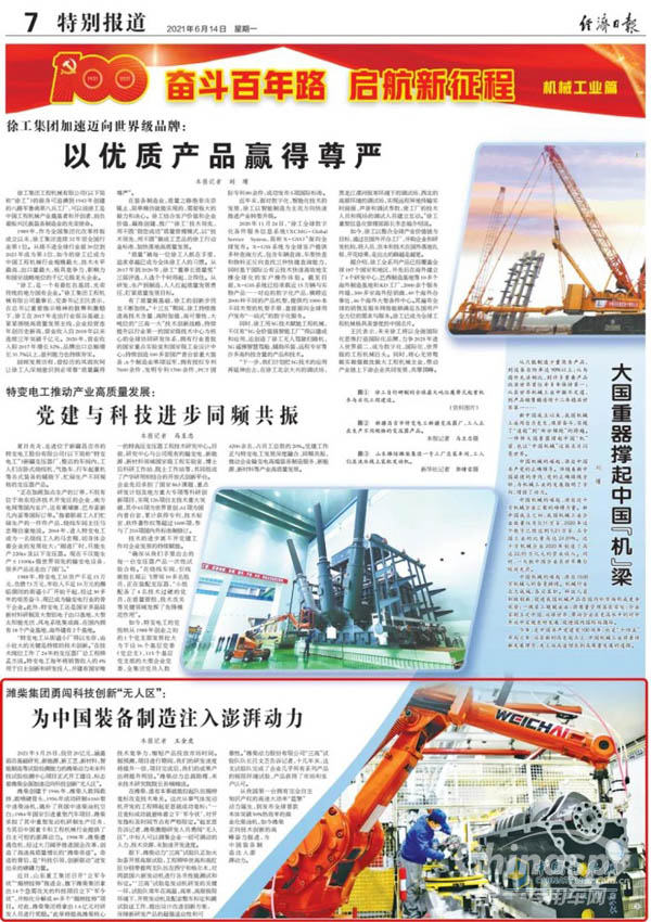 建党100周年之际,《经济日报》推出“奋斗百年路启航新征程”特别报道,重磅聚焦潍柴勇闯科技创新“无人区”,为中国装备制造注入澎湃动力,不断刷新机械工业领域的中国高度。