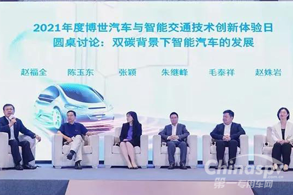 双碳背景下智能汽车的发展圆桌讨论,由世界汽车工程师学会联合会终身名誉主席、清华大学汽车产业与技术战略研究院院长赵福全博士主持,博世中国总裁陈玉东博士,博世氢能动力系统(重庆)有限公司总经理朱继峰,博世工程技术中国区总裁毛泰祥,博世底盘控制系统中国区总裁张颖,博世智能驾驶与控制中国区副总裁赵姝岩等对各自专业领导内的技术生态进行了热烈的讨论与生动的互动。