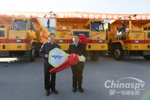 2021年11月8日上午9点,潍柴-神华乌海150吨大型矿用卡车首批交付仪式在扬州举行。山东重工集团党委书记、董事长,潍柴集团董事长谭旭光向神华乌海公司交付“金钥匙”,标志着潍柴自主研制的“大国重器”正式批量商业化应用,彻底打破国际品牌长期垄断,实现自主可控。