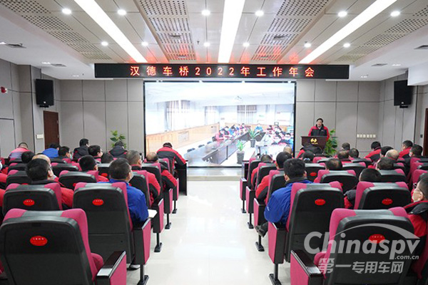 2022年2月6日,汉德车桥召开2022年工作年会,会议由党委书记、总经理王占朝主持,公司全体助理级以上干部参加。本次会议是在农历春节开工伊始召开的一次十分重要的会议,明确了汉德车桥2022年“干什么、怎么干”的关键问题。