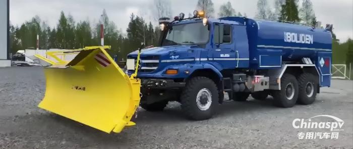 更令人惊讶的是,这款底盘的爬坡能力极强,即使面对陡峭的山坡也毫无压力。芬兰的冬天异常寒冷,大雪纷飞是家常便饭。为了应对这种情况,这款车在前部增加了推雪板,赋予了车辆推雪的功能。这样,即使在漫天大雪的矿山上,这款车也能自由地穿梭进行运油作业,从而保证了矿山各项工程的顺利进行。![]()