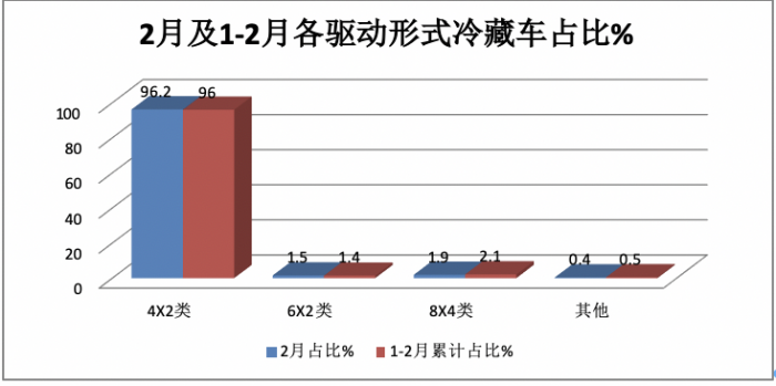 特点四、无论2月还是1-2月,轻型冷藏车均领涨领跑
