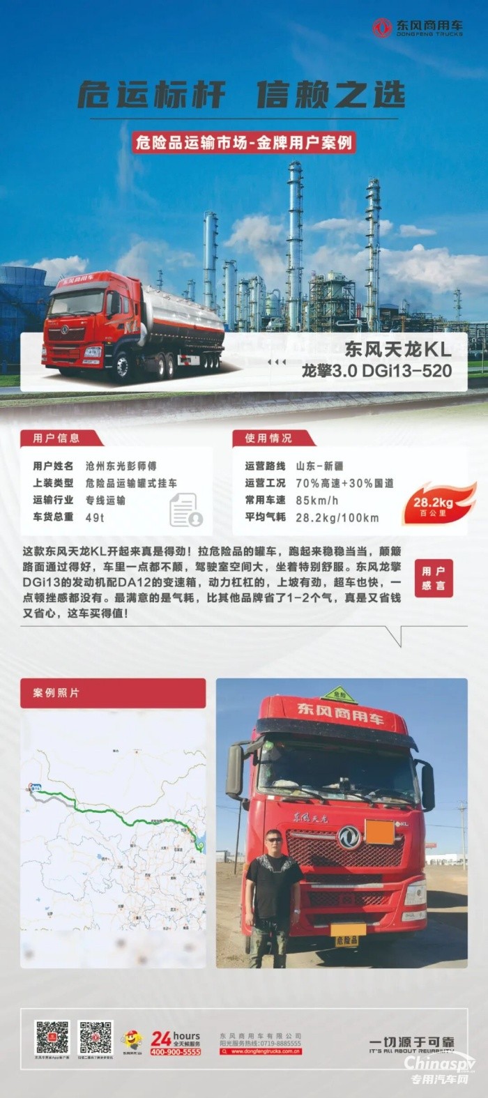 危险品运输选它没错!东风天龙KL,动力猛油耗低跑西北真省心