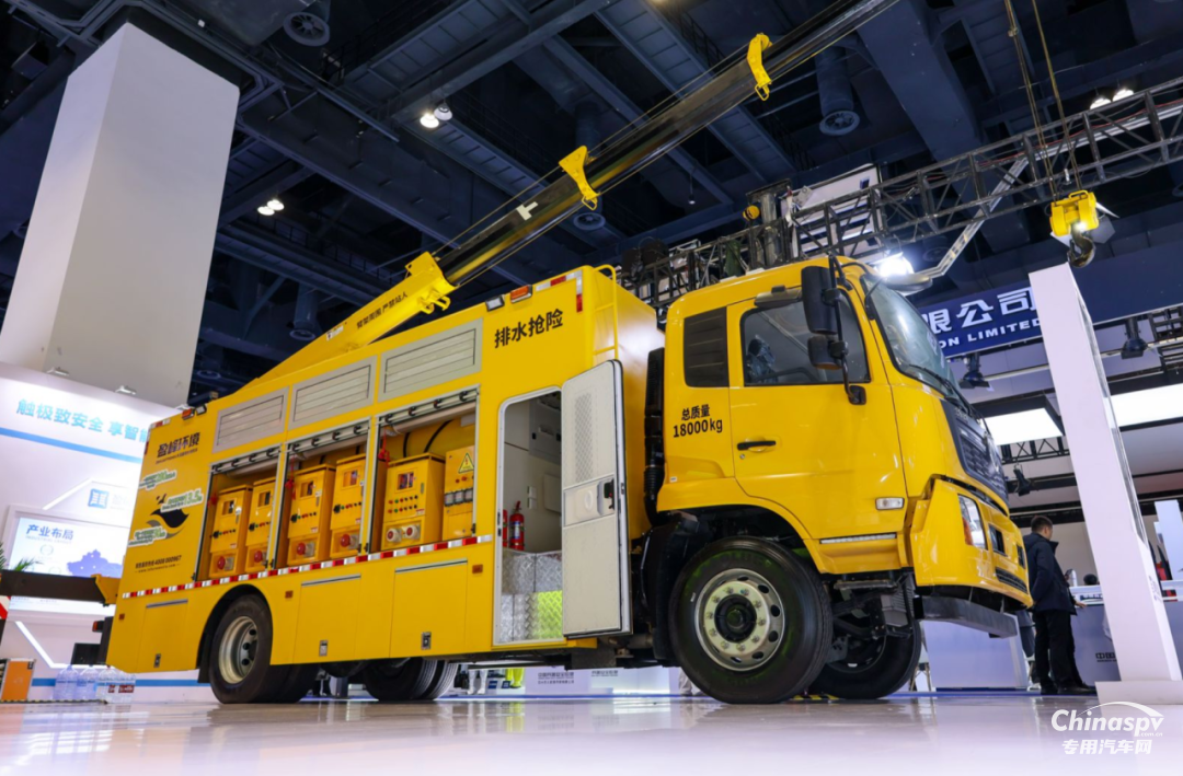 灾害内涝的“速排利器”,配备13.5米臂架,不仅实现水泵远距离精准投放,彻底规避人员涉险作业的安全隐患,更能适配堤坝决口等复杂地形的快速部署需求。